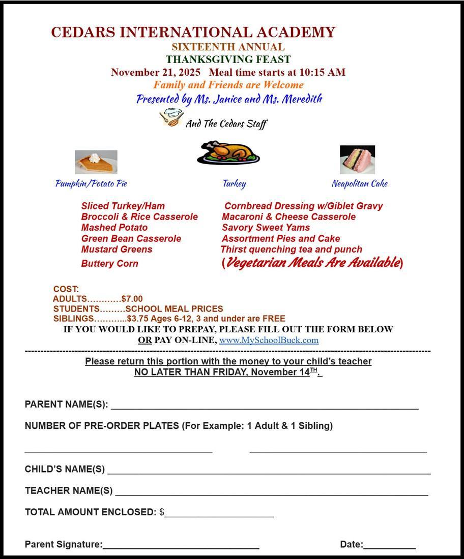 π¦π Join Us for the Cedars International Academy 16th Annual Thanksgiving Feast! ππ¦