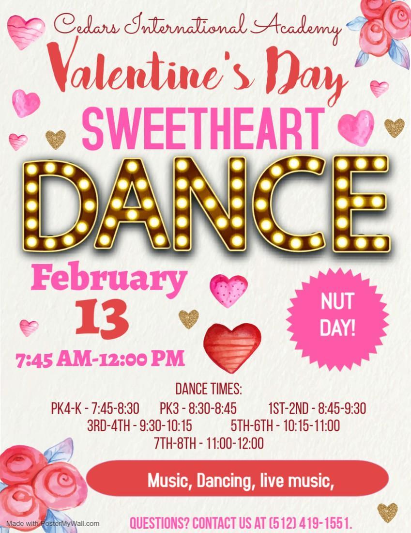 Cedars International Academy is hosting our Valentine’s Day Sweetheart Dance on February 13!